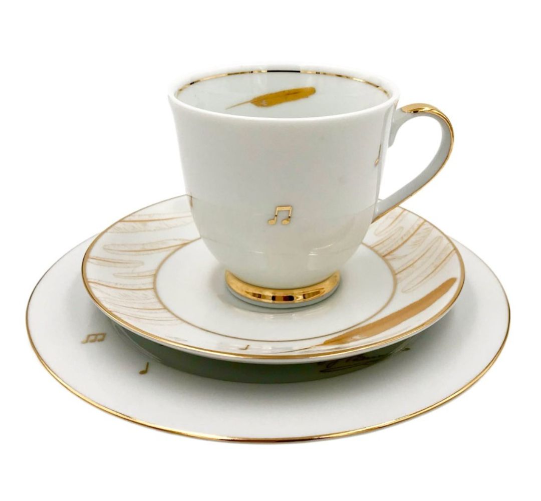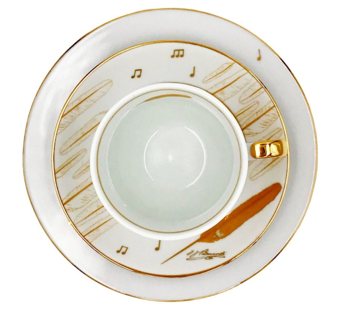Zestaw śniadaniowy Ignacy Jan Paderewski z filiżanką, spodkiem i talerzem z bogato zdobionej porcelany z kolekcji muzycznej słynnego Polskiego producenta porcelany Bogucice. Ponadczasowy design i jakość wykonania porcelany sprawia, że będzie idealnym wyborem zarówno do domu jak na ciekawy prezent. Najwyższej jakości porcelana stworzona przez Polskich rzemieślników uprzyjemni każdy rytuał picia herbaty lub kawy. PADEREWSKI 0725