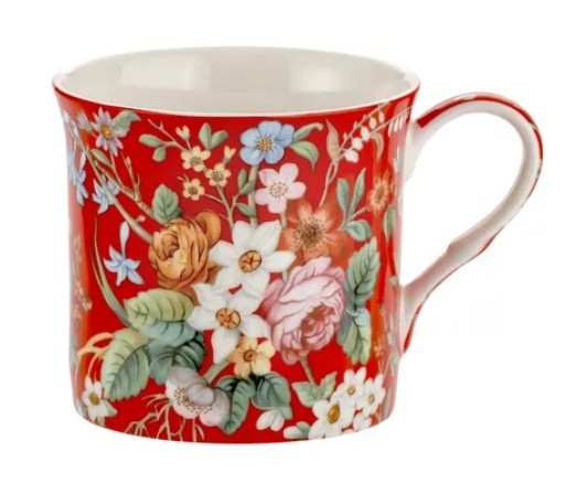 Kubek 300ml z porcelany bone china ozdobiony motywem kwiatowym. Jego pojemność idealnie sprawdzi się do parzenia kawy i herbaty.