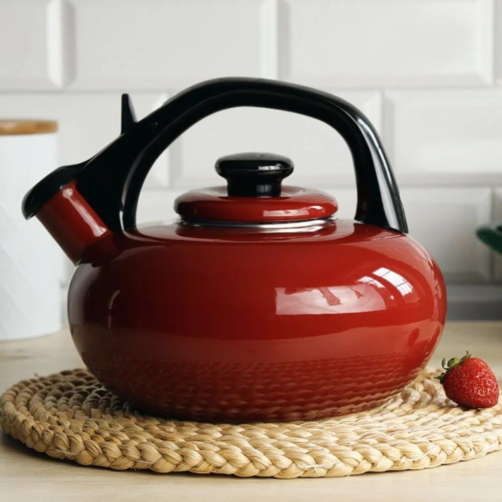 Wykonany z najwyższej jakości materiałów. Emalia jest nakładana ręcznie z dbałością o szczegóły. Czajnik wytwornie się prezentuje i zachwyca elegancją. Gwizdek unoszony mechanicznie można ustawić w pozycji otwartej (nie opada), co pozwala wlewać wodę do czajnika bez podnoszenia pokrywki.