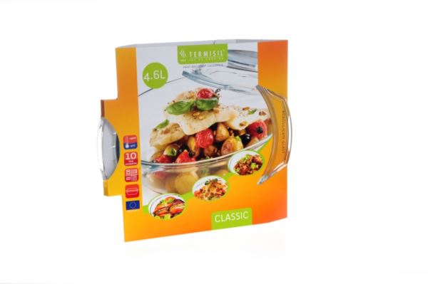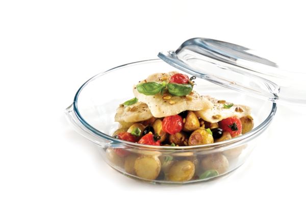 Naczynie żaroodporne z pokrywą wykonane ze szkła boro-krzemowego jest odporne na temp. -40*C do +300*C.