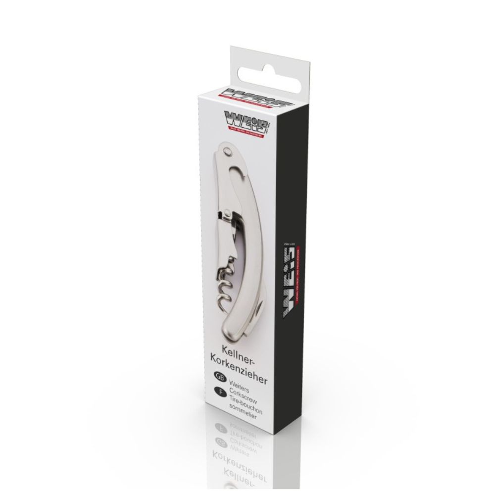 Kelner Active marki Weis to klasyczny i uznawany za najbardziej profesjonalny korkociąg wśród wszystkich przyrządów do otwierania win. Kelner posiada idealnie wyważoną, podwójną dźwignię, która umożliwia otwarcie butelki wina w dwóch szybkich ruchach bez uszkodzenia korka. Dodatkowo Active wyposażony został w ostry nożyk do usuwania folii na winie.