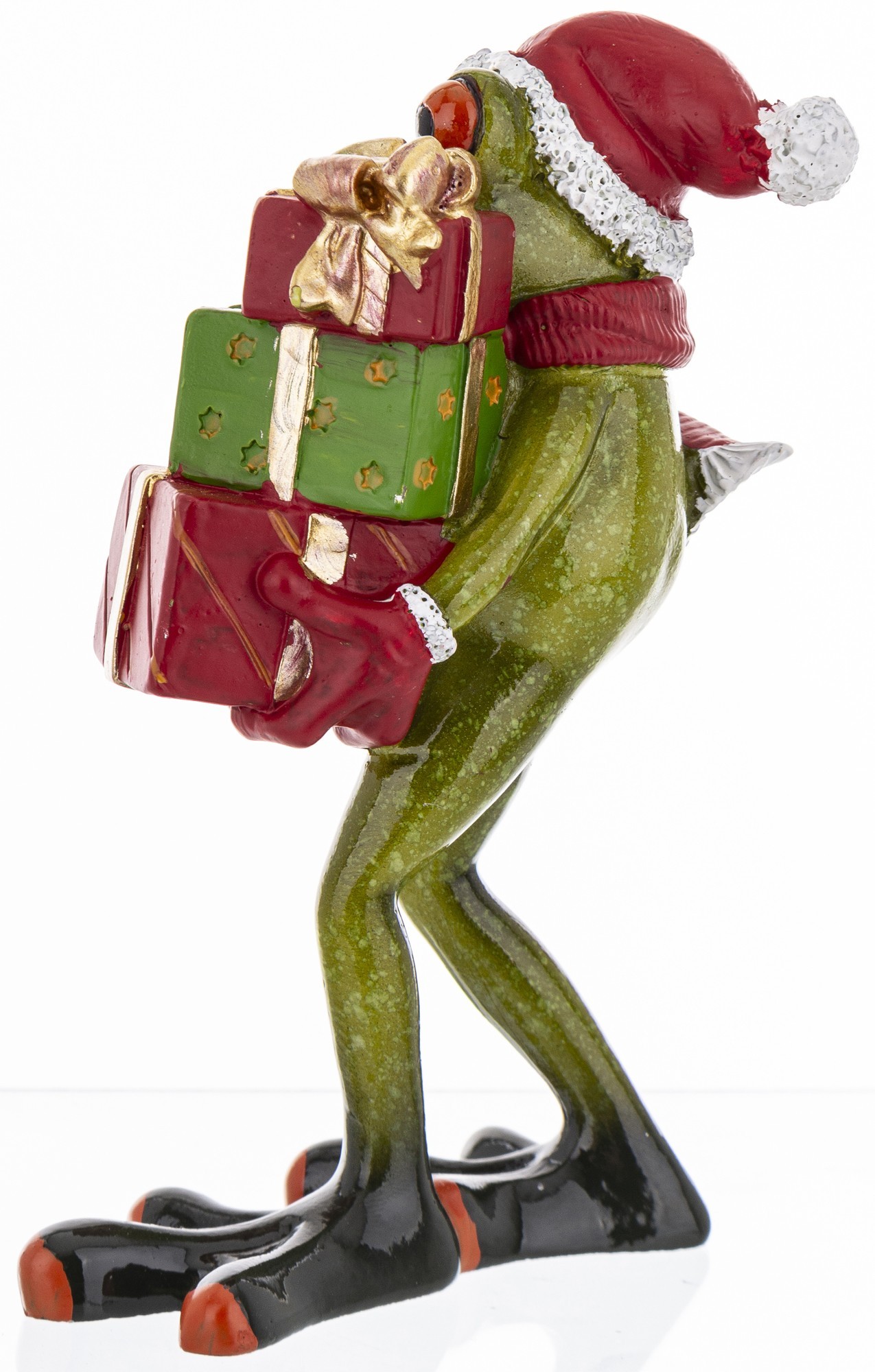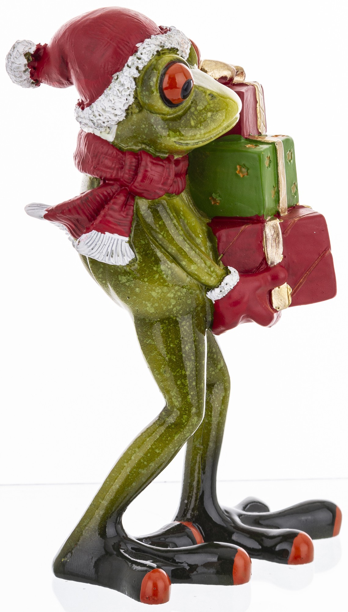 Zabawna figurka żaby w świątecznym wydaniu. Żabę wykonano dbając o najwyższą jakość wykończenia. Świetny pomysł na prezent na wiele różnych okazji dla rodziny czy przyjaciół. Żaba to symbol szczęścia oraz pieniędzy.
