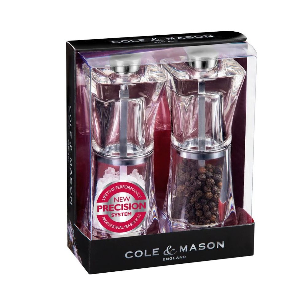 Zestaw młynków Crystal wykonany jest z całkowicie przeźroczystego akrylu, co dodaje młynkom niepowtarzalnego uroku oraz pozwala kontrolować ich zawartość. Nie bez powodu nazywane są kryształami wśród innych młynków, ich kształt oraz forma dodaje im wyjątkowej elegancji.