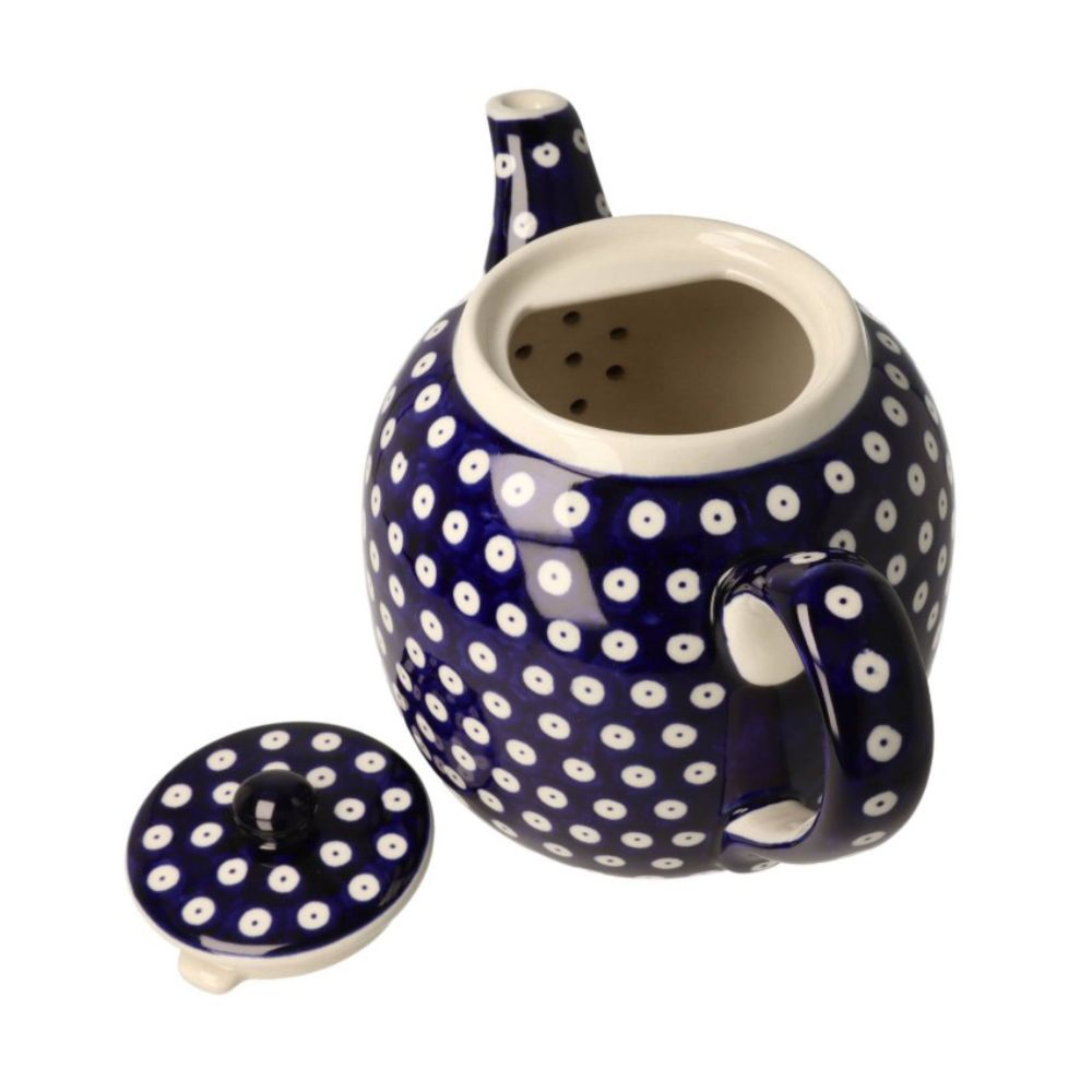 Dzięki elementowi przytrzymującemu pokrywka nie wypada podczas przechylania czajnika. W środku naczynia są dziurki, które zapobiegają przedostawaniu się fusów do rozlewanych napojów. Do czajnika proponujemy dokupić podgrzewacz (model GU959, GU1067, GU1361), który pozwoli długo cieszyć się gorącą herbatą lub kawą.