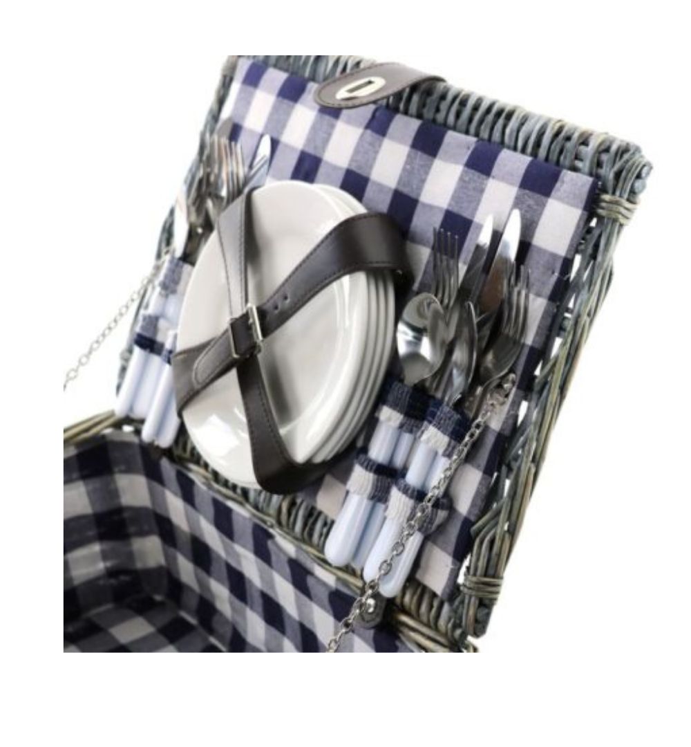 – zestaw sztućców ze stali nierdzewnej z białymi plastikowymi rączkami: 4 łyżki, 4 noże i 4 widelce