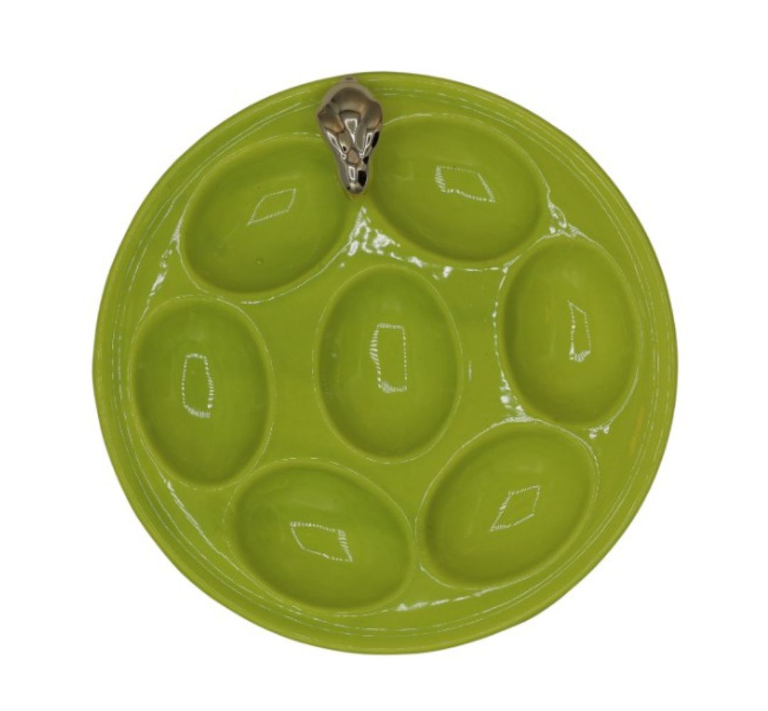 Talerz na jajka zielony ze złotym królikiem – Ewax