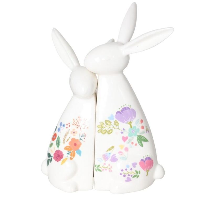 Zestaw 2 ceramicznych królików w kwiatki – Urocza dekoracja na Wielkanocny stół!