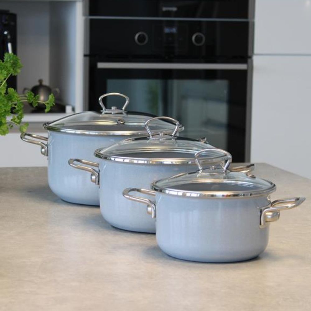 Szczególnie komplet garnków emaliowanych polecamy osobą, które poszukują zdrowych i bezpiecznych garnków do swojej kuchni, gdyż emalia nie wpływa na smak ani zapach produktów — nawet tych o wysokiej kwasowości. W tych naczyniach przygotujesz dania o najlepszych walorach zdrowotnych, gdyż nie wytwarzają szkodliwych związków — alergenów, dlatego garnki będą najlepsze do przygotowania dań dla dzieci i osób dbających o zdrowie oraz osób starszych podatnych na alergie.