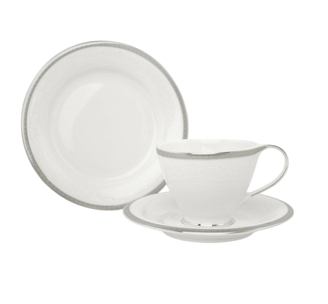 Filiżanka spodek talerzyk do herbaty o klasycznym wyglądzie i charakterystycznej platynie idealnie wkomponuje się zarówno w styl nowoczesnego, jak i klasycznego domu. Zastosowane materiały sprawią, że zestaw na długo zagości w Państwa domowym zaciszu.