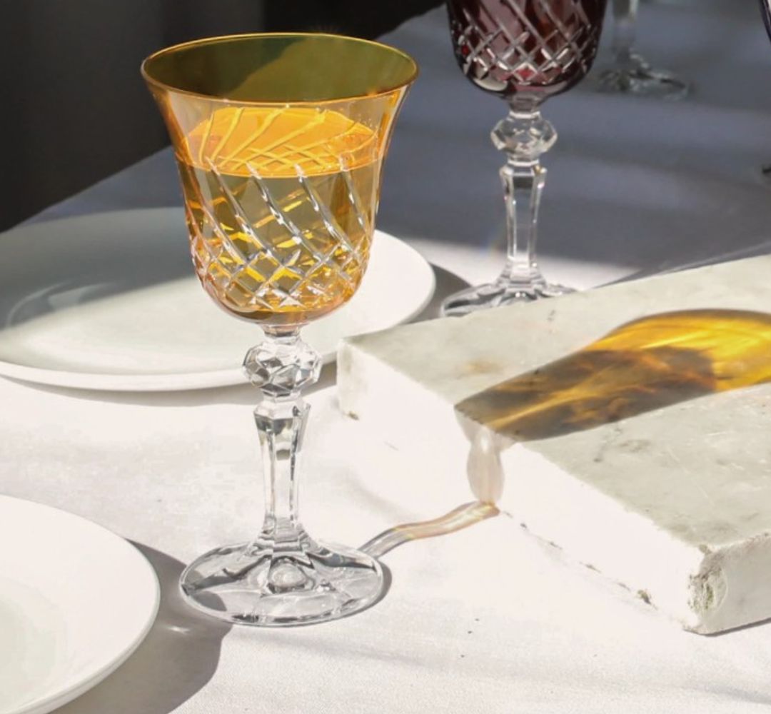Zestaw 6 sztuk kolorowych uniwersalnych kieliszków do wina, wykonanych z wysokiej jakości szkła crystalite.