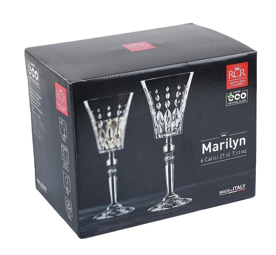 Kieliszki do wina, wody zostały wykonane z wysokiej jakości szkła kryształowego, ekologicznego (w 100% nadaje się recyklingu). Szkło kryształowe marki RCR jest idealnie przejrzyste, wyjątkowo błyszczy i wydaje przyjemne dźwięki np. podczas toastu. Kieliszki przeznaczone są do wina czerwonego, białego, różowego lub do wody.