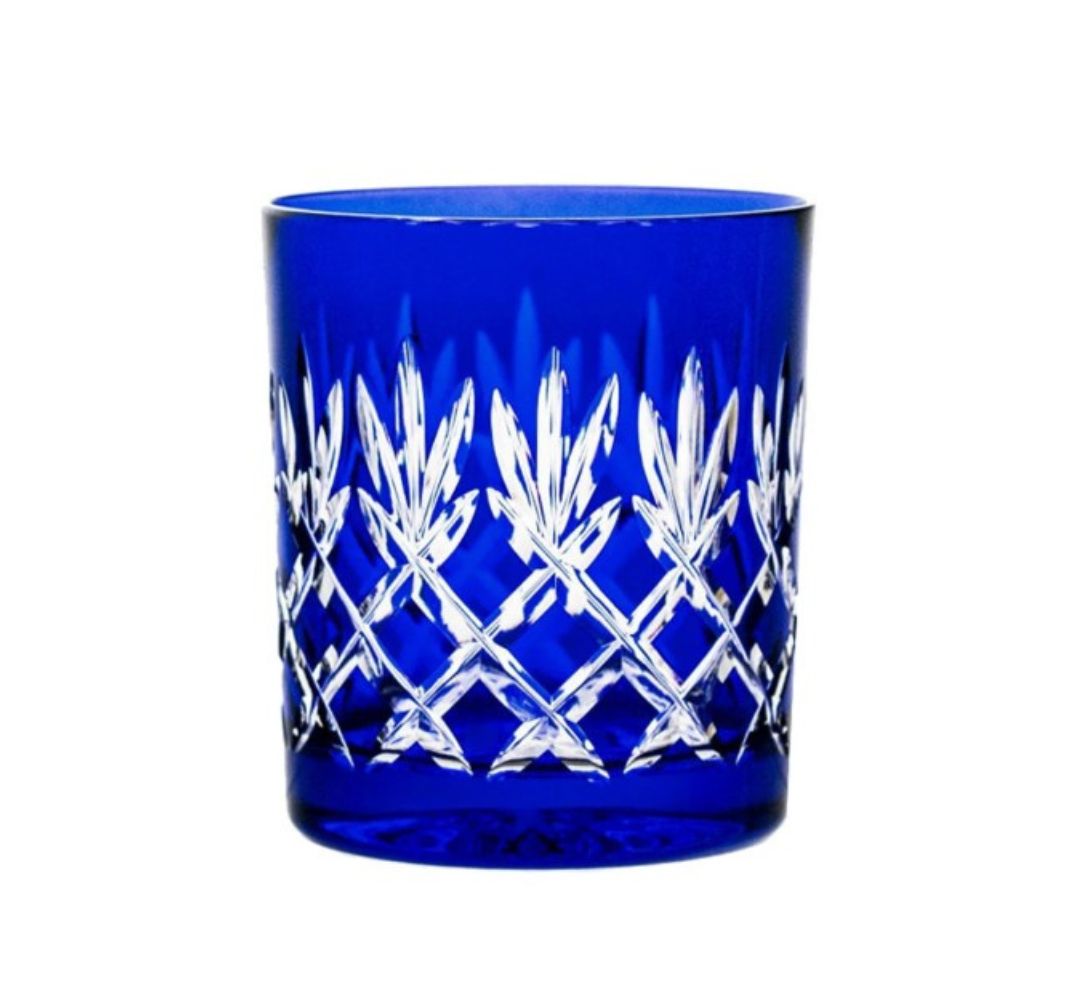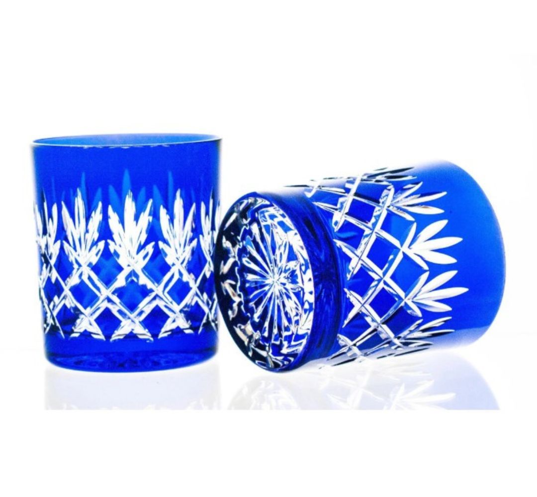 Piękne, malowane szkło kryształowe w kolorze kobaltowym. Komplet zawiera 6 sztuk. Wspaniałe na prezent. Ananas Jest elegancki i dość prosty w formie, co sprawia, że wspaniale komponuje się z innymi tradycyjnymi, jak i nowoczesnymi szlifami. Pasuje do każdej zastawy stołowej i aranżacji – zarówno do gładkiej ceramiki i obrusów, jak i tych bardzo wzorzystych.