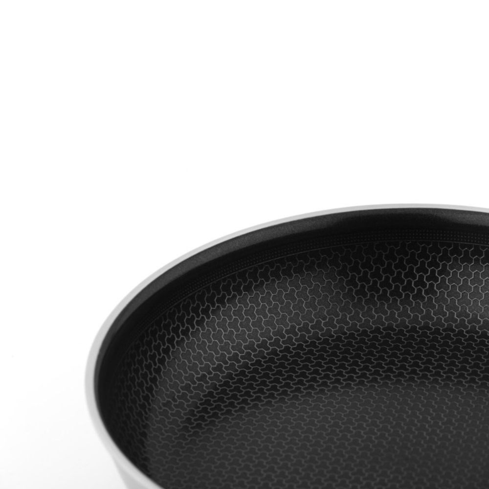 Unowocześnij swoją kuchnię dzięki wysokiej jakości patelni DuraMax ze stali nierdzewnej, zaprojektowanej z myślą o trwałości i wygodzie. Wykonana z wysokiej jakości stali nierdzewnej 18/10 patelnia łączy wytrzymałość z doskonałymi właściwościami użytkowymi. Potrójna ceramiczna powłoka zapobiega przywieraniu potraw i ułatwia czyszczenie, a także zapewnia odporność na zarysowania, dzięki czemu patelnia zachowuje swój nienaganny wygląd na dłużej nawet przy jej częstym użytkowaniu.