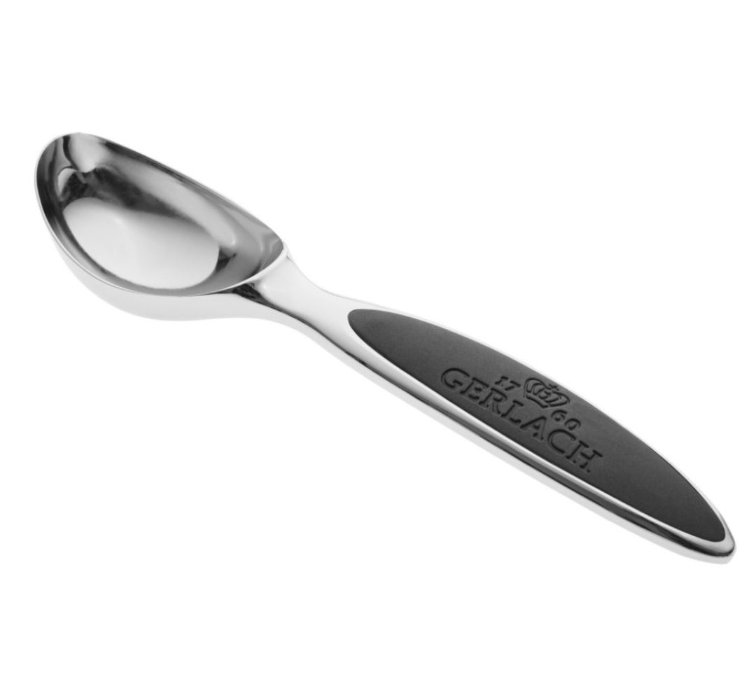 Łyżka jest bardzo dobrze wyważona, z łatwością można nią nakładać odpowiednie porcje. Jej ergonomiczna i wyprofilowana rączka doskonale leży w dłoni, a silikonowa nakładka sprawia, że ma właściwości antypoślizgowe.
