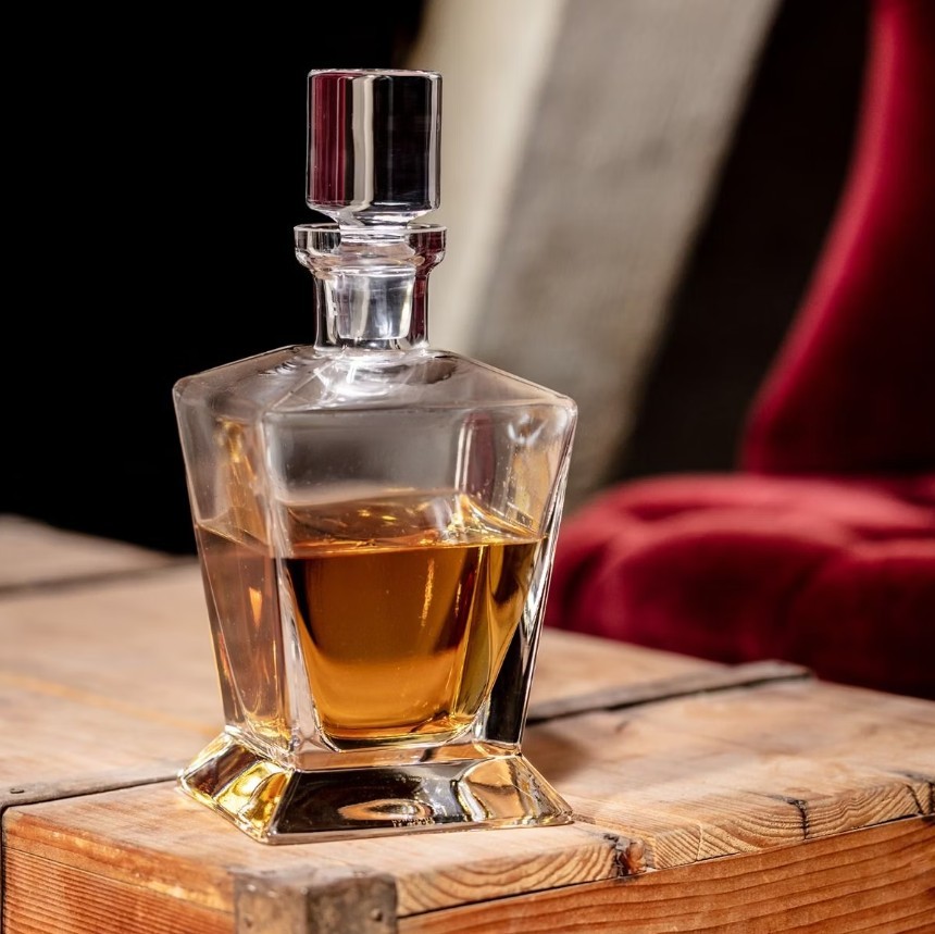 Wytworna i klasyczna karafka z korkiem o pojemności 750 ml, do serwowania whisky lub burbona. Karafka wykonana z idealnie przejrzystego szkła dzięki temu idealnie podkreśla barwę tego wytwornego trunku. Będzie pięknie prezentować się w każdym wnętrzu, zarówno tym klasycznym jak i bardziej nowoczesnym.