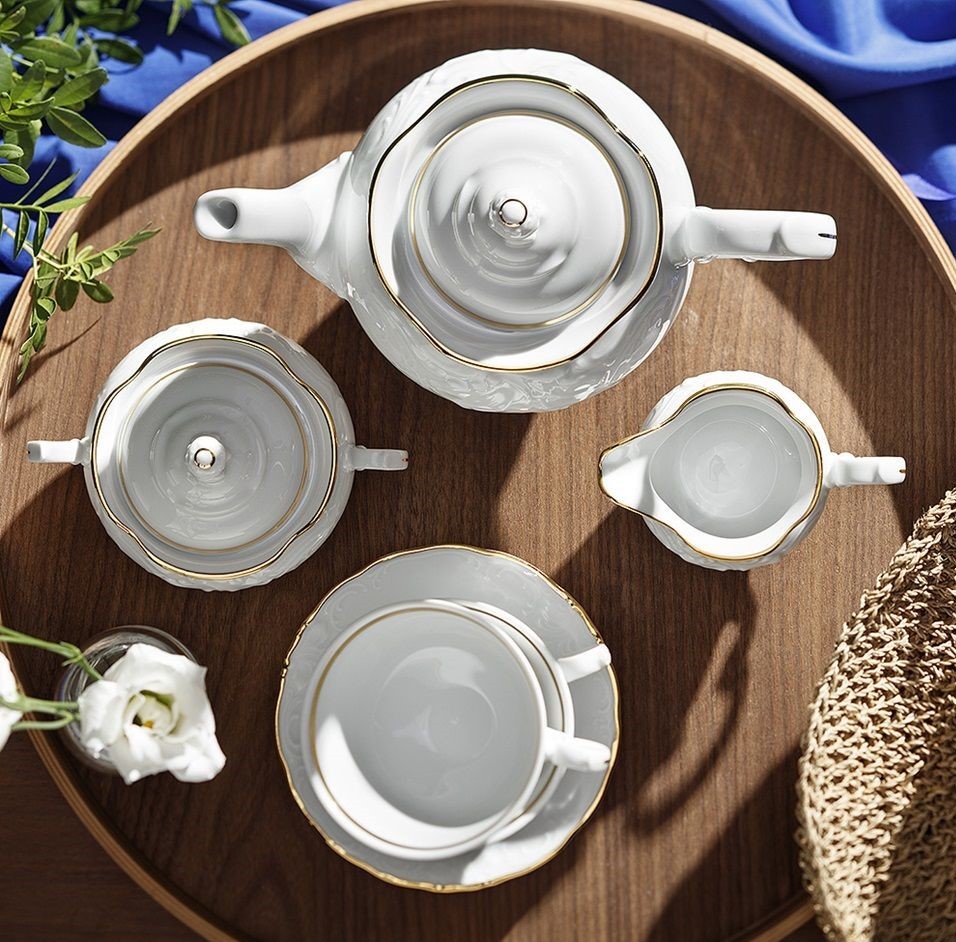 Garnitur do kawy na 12 osób zdobiony złotym paskiem. Kolekcja Fryderyka przez wiele lat produkowana przez fabrykę porcelany Krzysztof. Aktualnie produkcja została wznowiona przez Polskie Fabryki Porcelany. Kolekcja fryderyka nawiązuje do epoki baroku. Jej klasyczne i eleganckie reliefy zdobione kwiatowym ornamentem chętnie przyjmują każdą dekorację.