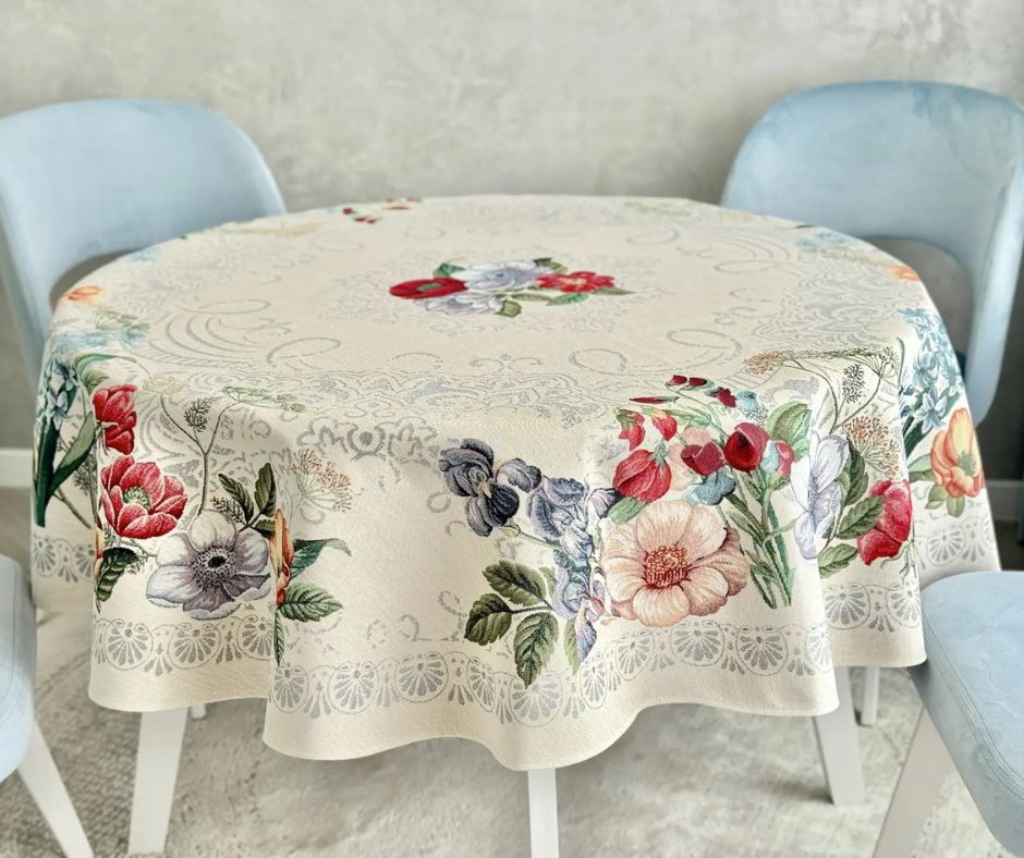 Obrus noworoczny z pewnością stworzy przytulną atmosferę w Twoim domu, wprowadzi wyjątkowy nastrój. Obrus wykonany jest z wytrzymałego materiału – gobelinu. Aby wybrać odpowiedni rozmiar obrusu, należy dodać 50-60 cm do długości i szerokości stołu. Wtedy obrus będzie zwisać o 25-30 cm ze wszystkich stron. Do obrusu można dobrać cały komplet gobelinów z tej samej kolekcji: podkładki na stół, bieżniki i poszewki dekoracyjne. Wyroby gobelinowe są przyjemne w dotyku, solidne i piękne. Mimo że obrus gobelinowy wygląda bardzo delikatnie, łatwa jest jego pielęgnacja. Produkt zachowuje swój kształt i kolor po praniu i prasowaniu. Obrus można używać na co dzień, można go prać w temperaturze +30°C.