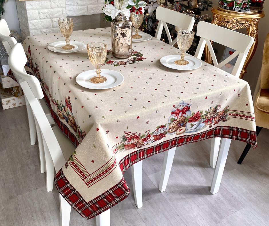 Obrus noworoczny z pewnością stworzy przytulną i świąteczną atmosferę w Twoim domu, wprowadzi wyjątkowy nastrój Świąt Bożonarodzeniowych. Obrus wykonany jest z wytrzymałego materiału – gobelinu. Aby wybrać odpowiedni rozmiar obrusu, należy dodać 50-60 cm do długości i szerokości stołu. Wtedy obrus będzie zwisać o 25-30 cm ze wszystkich stron. Do obrusu można dobrać cały komplet gobelinów z tej samej kolekcji: podkładki na stół, bieżniki i poszewki dekoracyjne. Wyroby gobelinowe są przyjemne w dotyku, solidne i piękne. Mimo że obrus gobelinowy wygląda bardzo delikatnie, łatwa jest jego pielęgnacja. Produkt zachowuje swój kształt i kolor po praniu i prasowaniu. Obrus można używać na co dzień, można go prać w temperaturze +30°C.