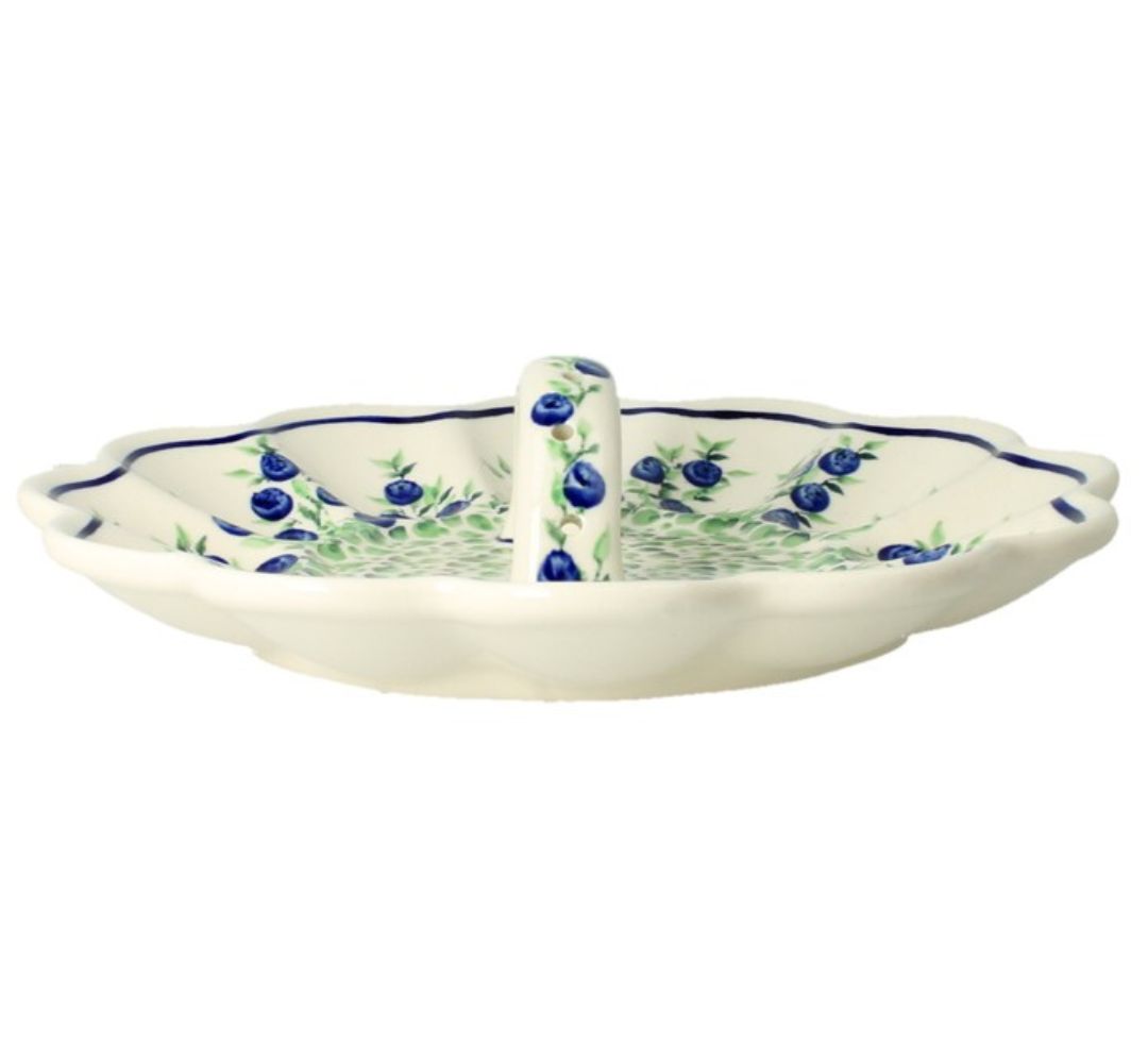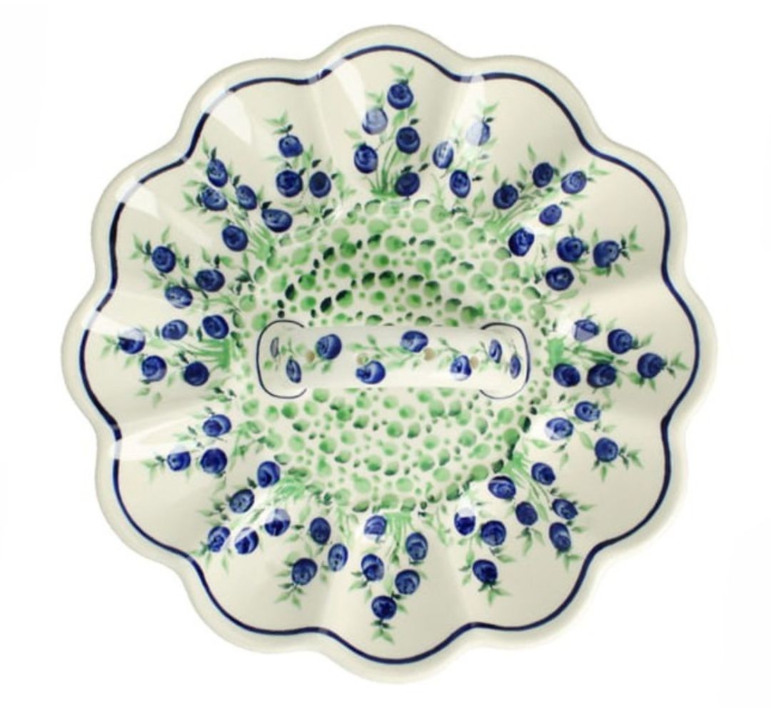 Dekoracja 1208 – Jagody to jedna z klasycznych dekoracji Bolesławca nawiązująca do dawnych, tradycyjnych motywów. Stworzona za pomocą pędzla i stempli, jej głównym elementem są jagody w barwach kobaltu i zieleni.