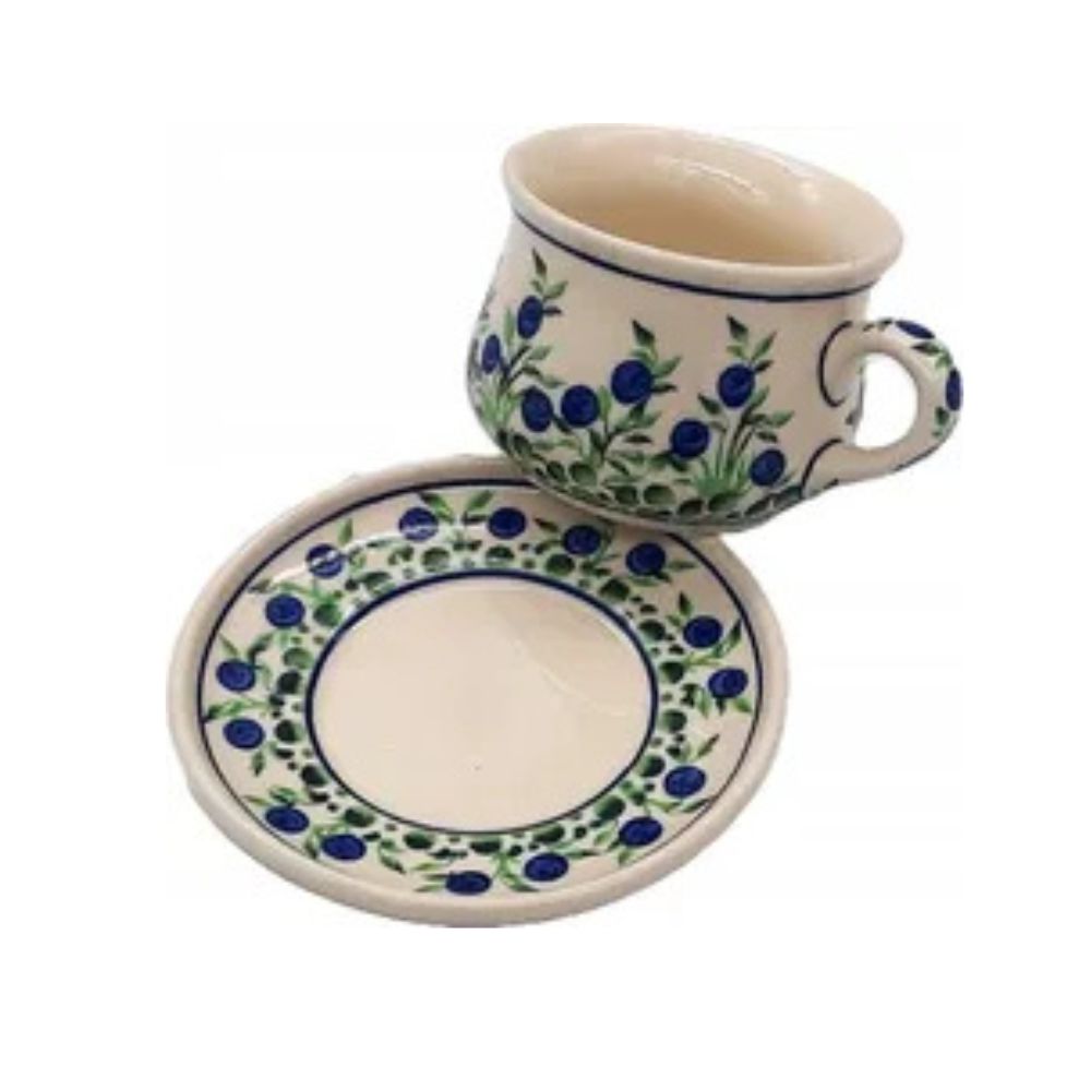 Dekoracja 1208 – Jagody to jedna z klasycznych dekoracji Bolesławca nawiązująca do dawnych, tradycyjnych motywów. Stworzona za pomocą pędzla i stempli, jej głównym elementem są jagody w barwach kobaltu i zieleni.