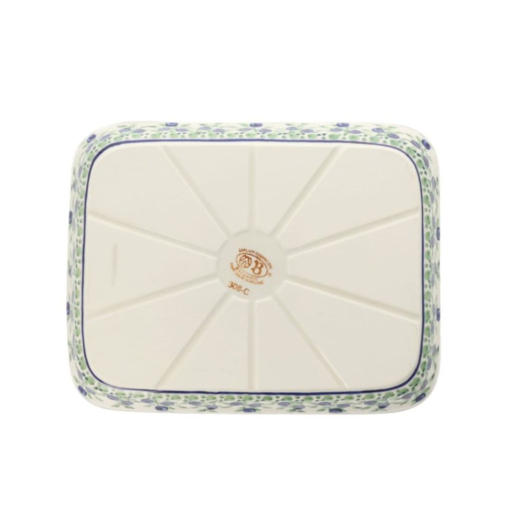 Dekoracja 1208 – Jagody to jedna z klasycznych dekoracji Bolesławca nawiązująca do dawnych, tradycyjnych motywów. Stworzona za pomocą pędzla i stempli, jej głównym elementem są jagody w barwach kobaltu i zieleni.