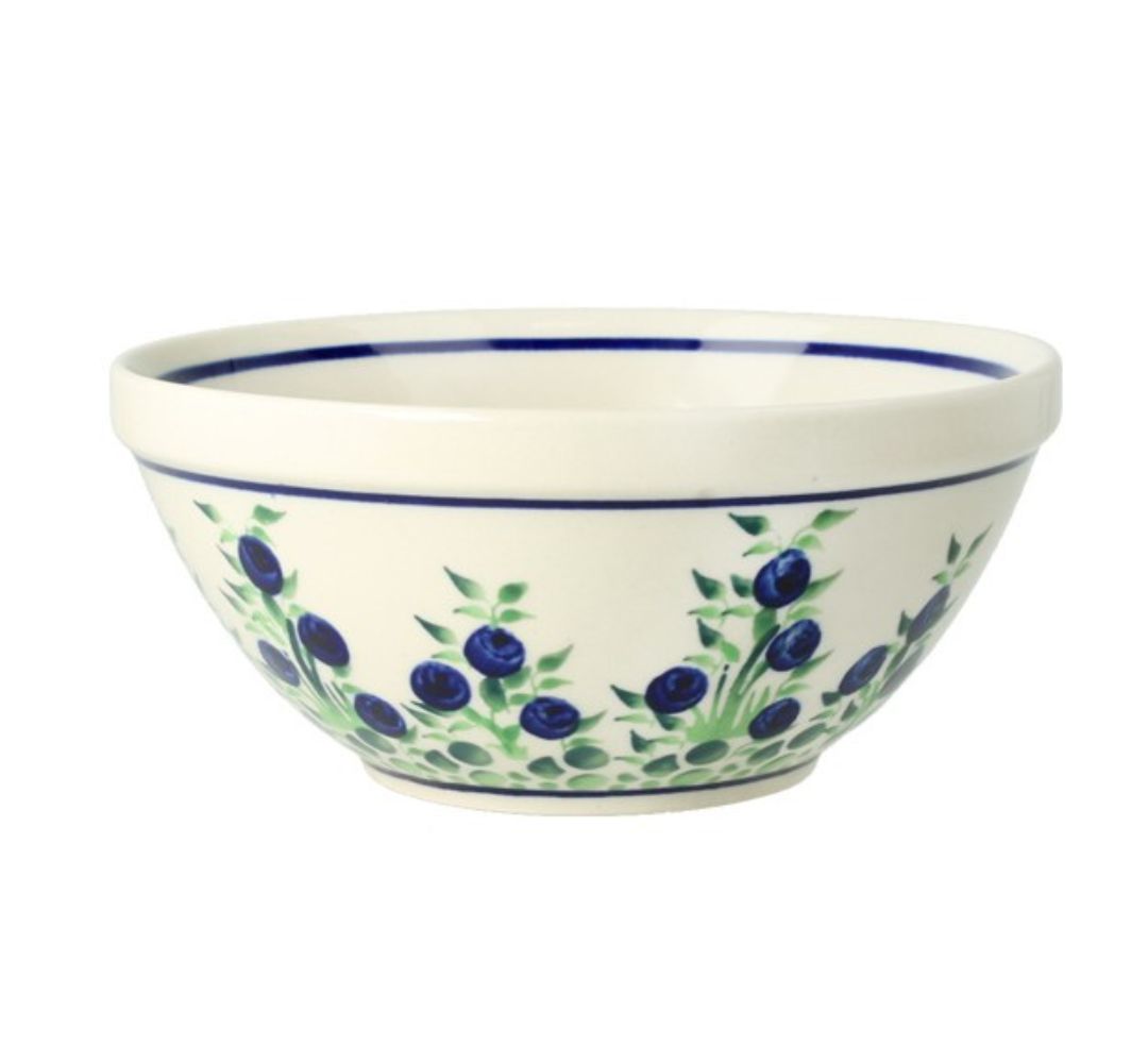 Ceramiczna miska o pojemności 500 ml, dekorowany ręcznie metodą stempelkową motywem jagód.