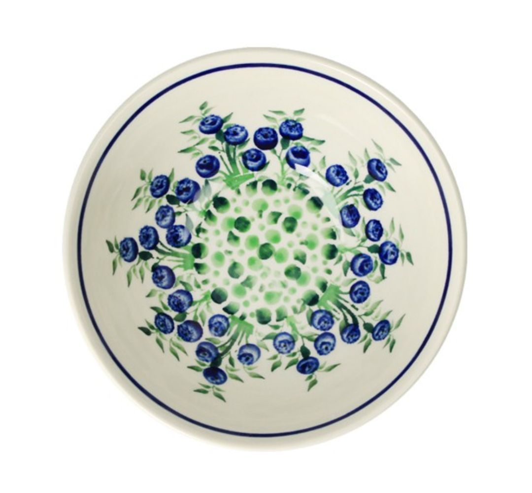 Dekoracja 1208 – Jagody to jedna z klasycznych dekoracji Bolesławca nawiązująca do dawnych, tradycyjnych motywów. Stworzona za pomocą pędzla i stempli, jej głównym elementem są jagody w barwach kobaltu i zieleni.
