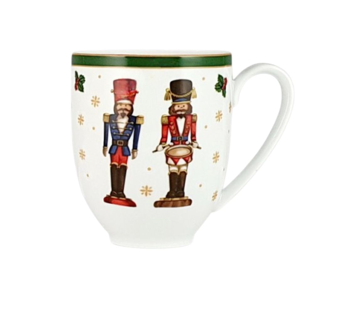 Porcelana „Cicha Noc” przyciąga wzrok z subtelną elegancją — motywy świąteczne, gwiazdki czy delikatne akcenty kolorystyczne współgrają z klasyczną formą naczyń. To kolekcja, która nie dominuje, ale subtelnie oplata stół świąteczną opowieścią.