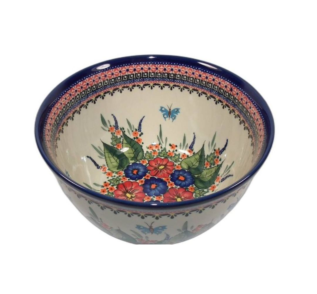 Ceramiczna duża misa Miska GU-986A o pojemności 4,5l, dekorowana ręcznie sielskim motywem fiołków.