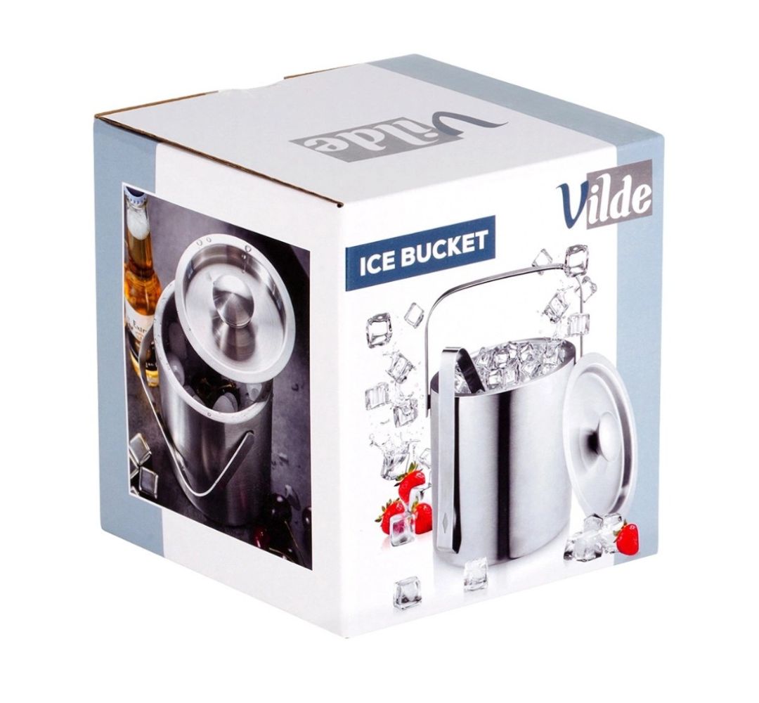 Wiaderko do lodu termiczne ze szczypcami, wykonane z solidnych materiałów. Prezentuje się bardzo efektownie, więc będzie dobrze prezentować się na stole. Wiaderko wykorzystamy do schładzania napojów, szampana, wina oraz innych trunków. Dzięki niemu podczas imprez nasze napoje będą zawsze schłodzone. Pokrywka pozwoli utrzymać dłużej niższą temperaturę w wiaderku, a szczypce zapewnią wygodne i higieniczne wyjmowanie lodu oraz umieszczanie go w szklance. Nadaje się do każdego grilla, imprezy, baru, wesela, imprezy cateringowej, restauracji, hotelu lub ogrodu. Oryginalny produkt marki Vilde. Wyprodukowano zgodnie z europejskimi standardami.