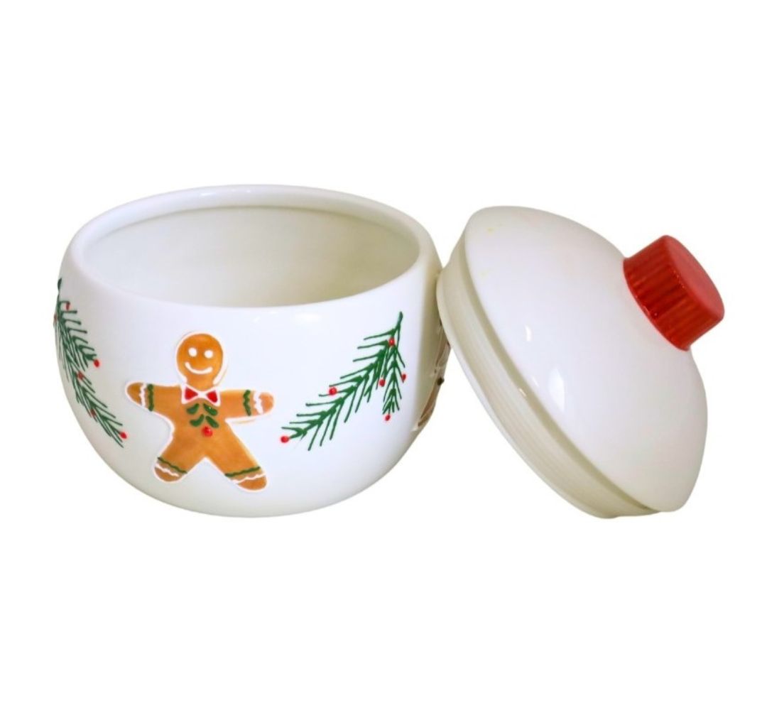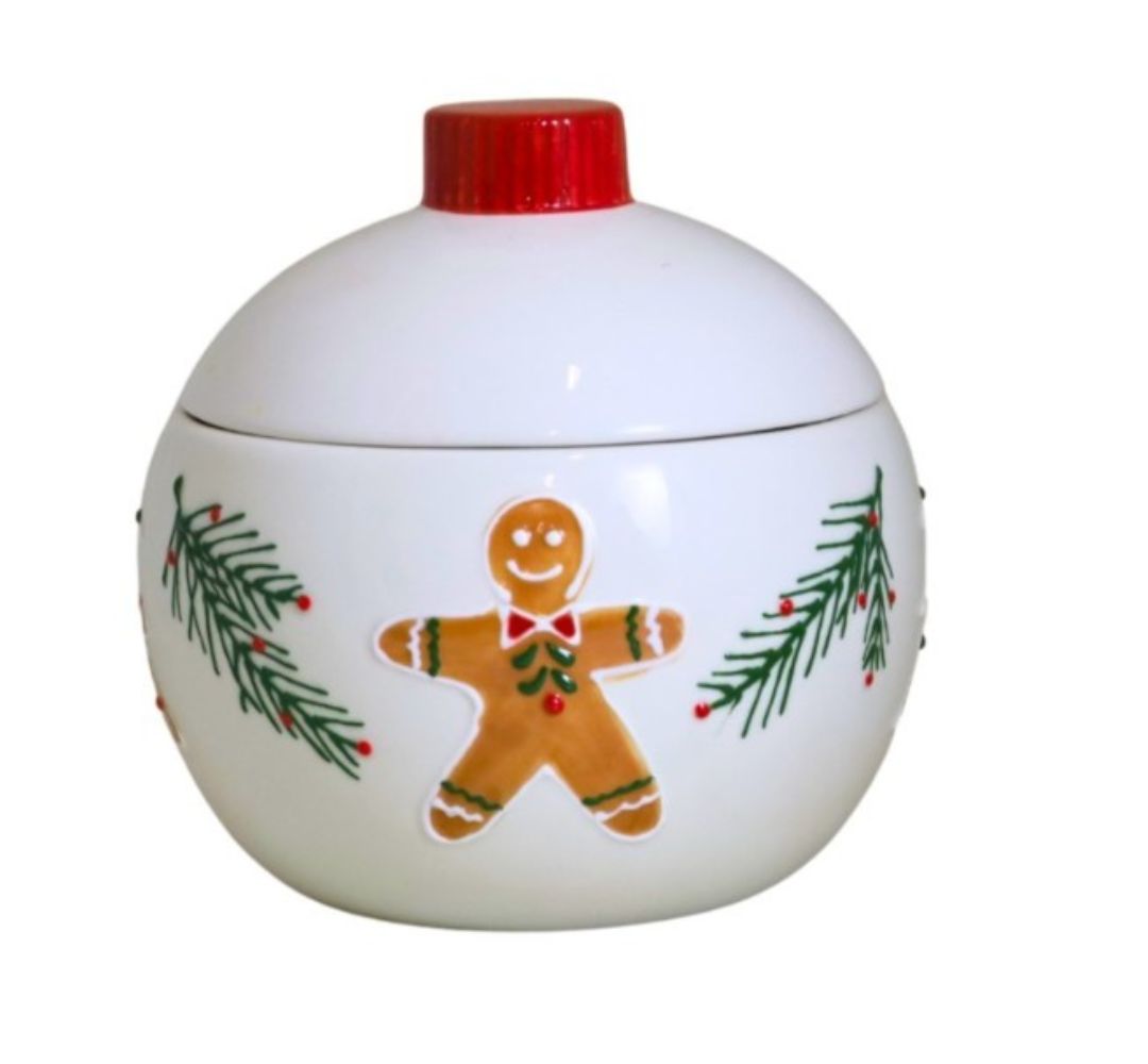 Ozdobne pudełko z pokrywką w kształcie bombki z ręcznie malowanymi zdobieniami. Doskonały pojemnik na pierniki, praliny, bakalie i inne świąteczne przysmaki. Uroczy i praktyczny dodatek do każdego domu. Idealny na czas Świąt.