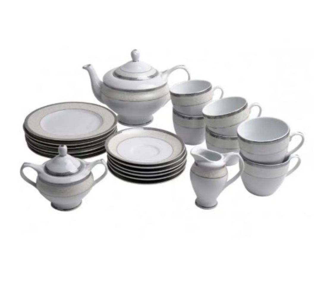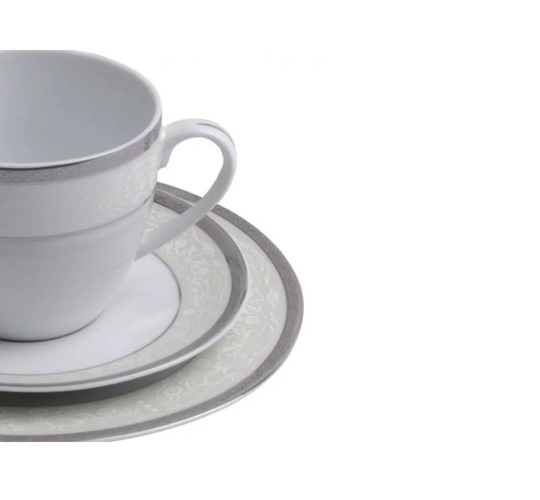 Serwis do herbaty Agawa Platin fason o obłych, delikatnych kształtach cienkich ściankach. Bogato a zarazem subtelnie zdobiony platyną doskonale prezentuje się na każdym stole. Uwiedzie swoim wdziękiem tych, którzy doceniają estetykę i celebrację codziennych, z pozoru zwykłych posiłków. Białe, porcelanowe dzieła zostały ozdobione niepowtarzalnymi dekoracjami, które dodają im wyjątkowości, a jednocześnie podkreślają subtelny charakter zastawy. Wysoka jakość wykonania gwarantuje trwałość i odporność na uszkodzenia. Elegancki i stylowy design dodaje uroku każdej kolacji czy spotkaniu przy herbacie. Dbałość o najmniejsze detale sprawia, że serwis jest nie tylko praktyczny, ale także stanowi ozdobę każdej kuchni.