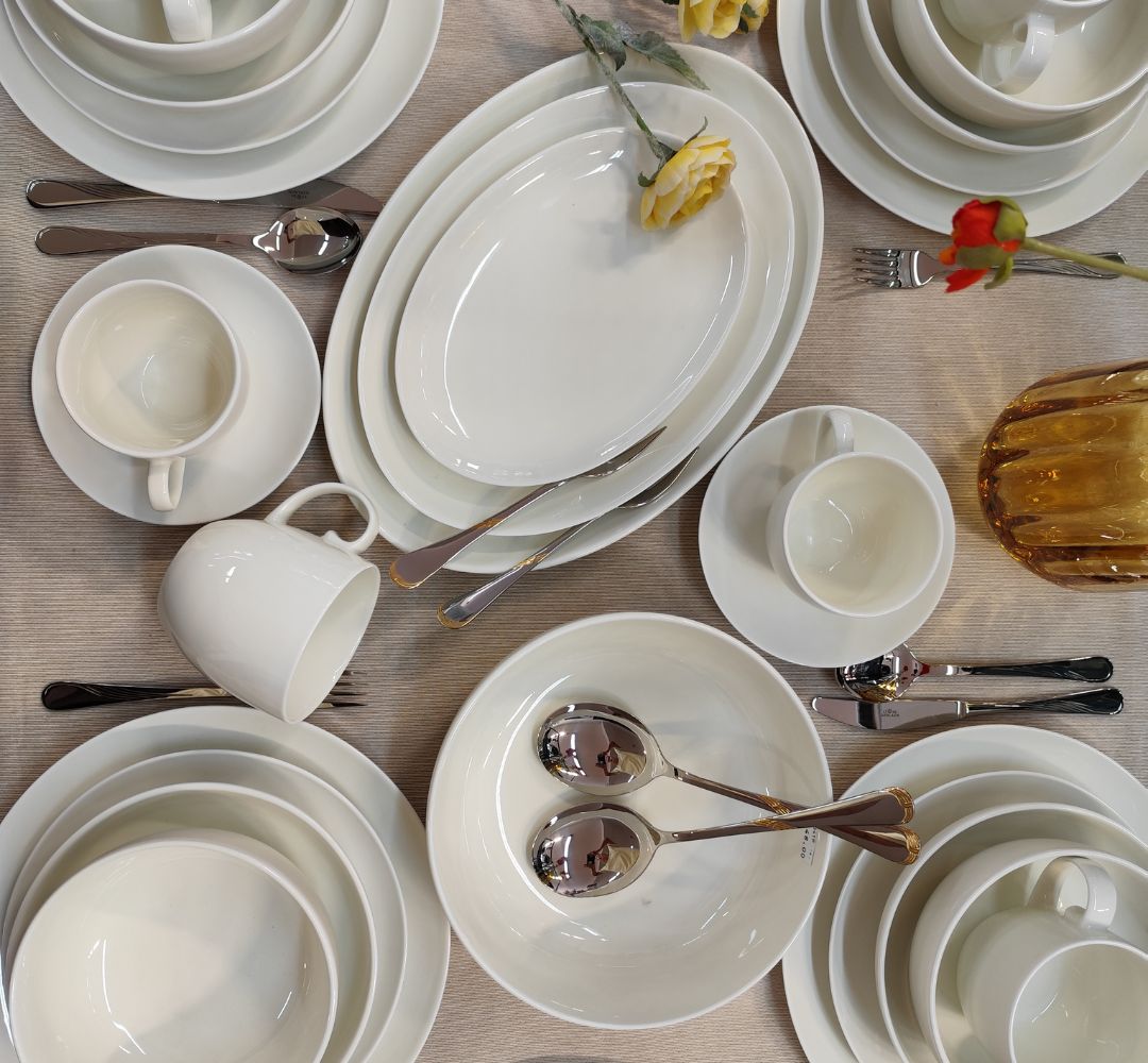 Base Cream 1232  od Bogucic to nowoczesny, uniwersalny fason. Serwis obiadowy dla 6 osób składający się z 42 elementów. Wyróżnia go delikatny, kremowy odcień ecru, który nadaje zastawie ciepły i przytulny charakter, idealnie komponujący się zarówno z nowoczesnymi, jak i klasycznymi aranżacjami stołu.