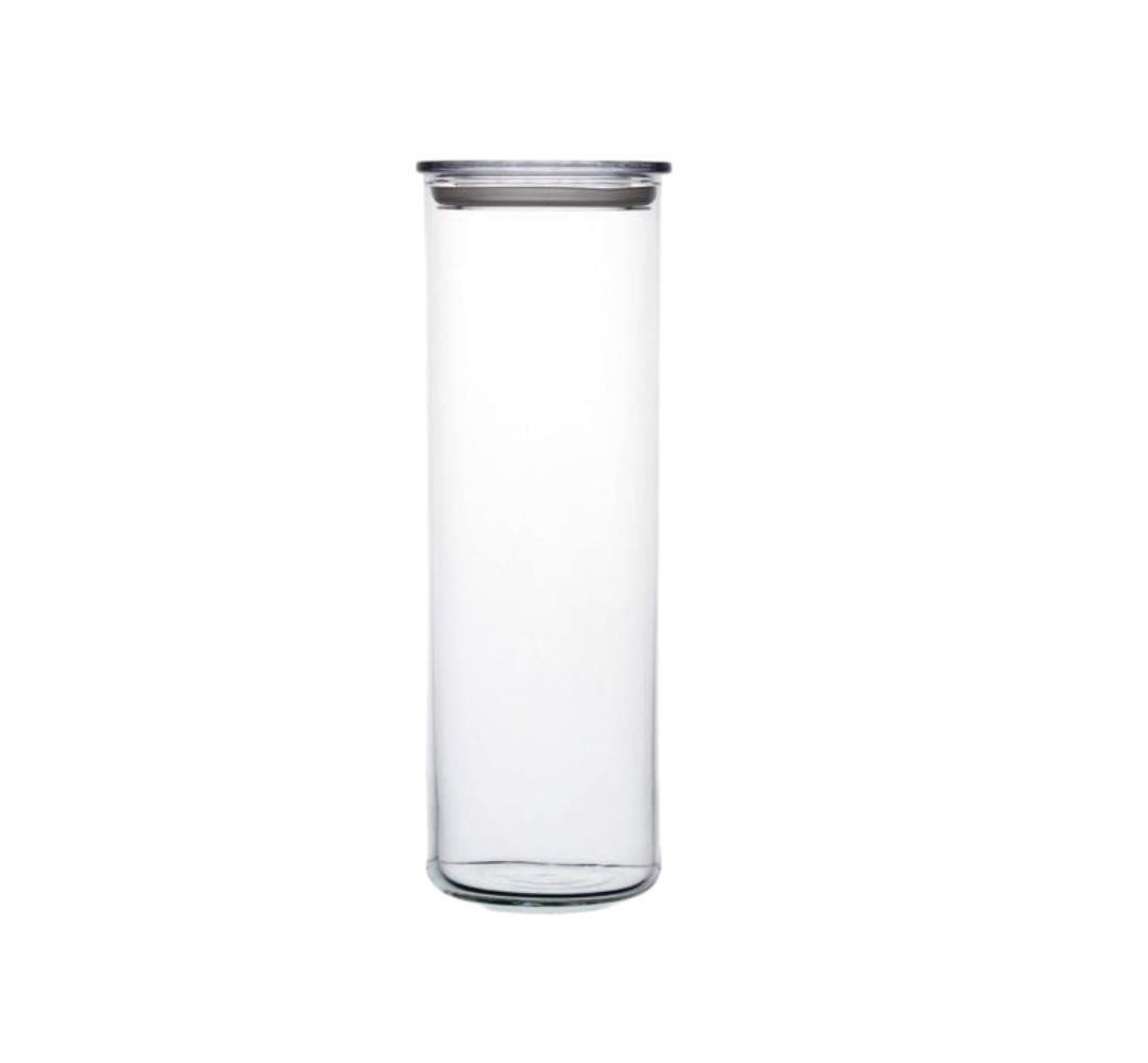 - Szklany pojemnik do przechowywania żywności, tuba z pokrywką plastikową/drewnianą