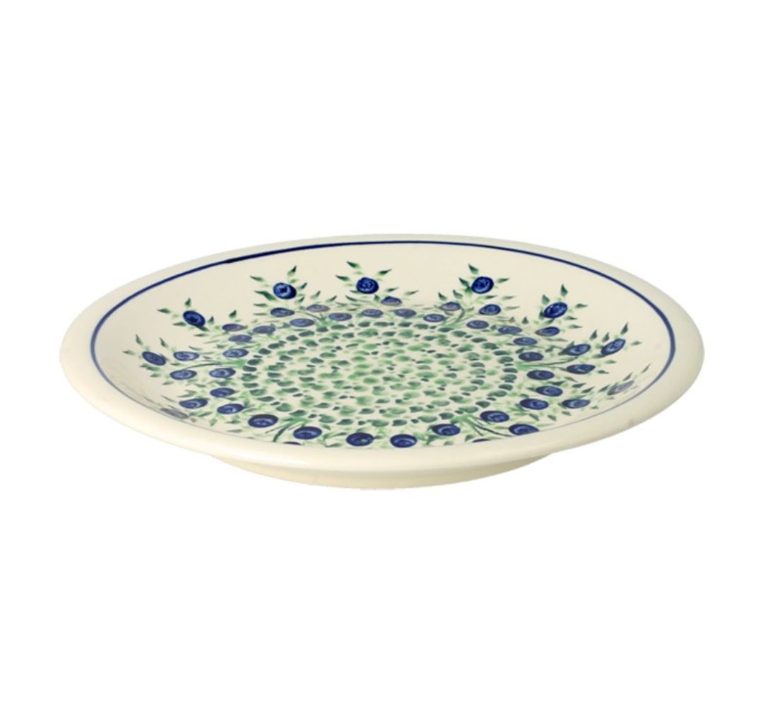 Talerz płytki obiadowy o średnicy 24 cm dekorowany ręcznie metodą stempelkową motywem jagód.