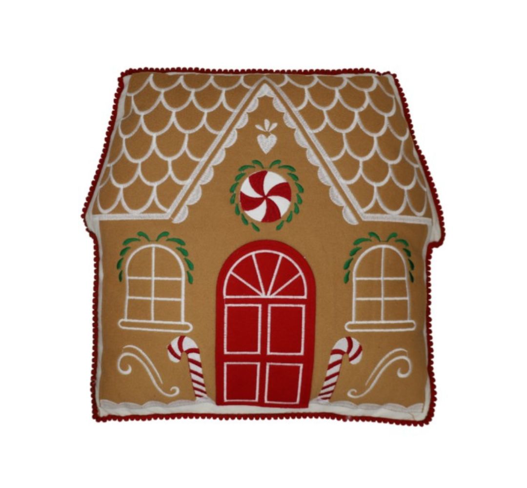 Urocza poduszka dekoracyjna z poliestru w beżowym kolorze, w kształcie chatki z piernika, idealna na świąteczny czas. Jej wyjątkowy design wprowadza radosny nastrój i przytulność do każdego wnętrza. Miękki materiał zapewnia komfort, a oryginalny kształt sprawia, że poduszka stanie się efektownym akcentem na sofie, fotelu czy łóżku.